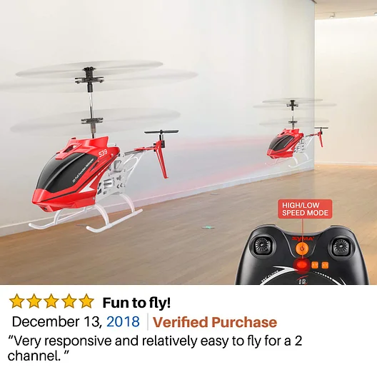 [Full 3.5 Channels & 2 Selectable Frequencies] -- Up, Down, Left, Right, Forward and Backward built-in Gyro to hover in the air. With Gyro Stabilizer, Moves More Flexible and Stable.2 Selectable Frequencies Let You Fly Up To 2 Helicopters At Once.